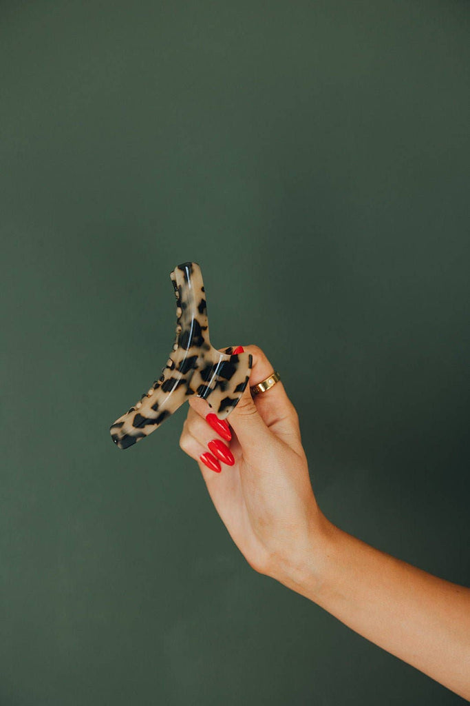 These claw clips are a must for your accessory bag! Every Andi claw clip is specifically made to hold your hair as cute as humanly possible, all day long. This skinny rectangle clip is a tan tortoise color, that pairs perfectly with your favorite sweats, date night dress, or work fit! It is made out of a high quality acetate material and is 4 inches long.