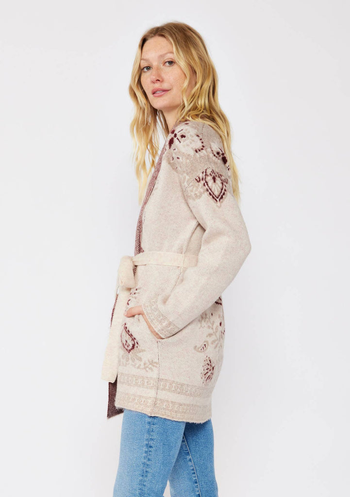 Tribal Coatigan with Pockets: Natural/Burgundy
