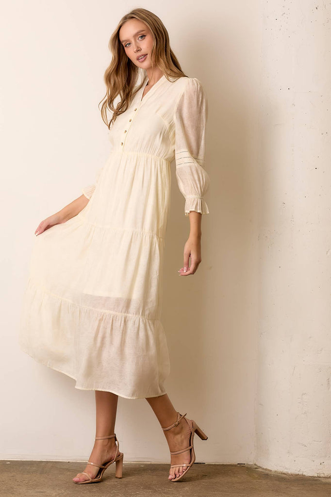 V-Neck Long Sleeve Midi Dress in Ivory