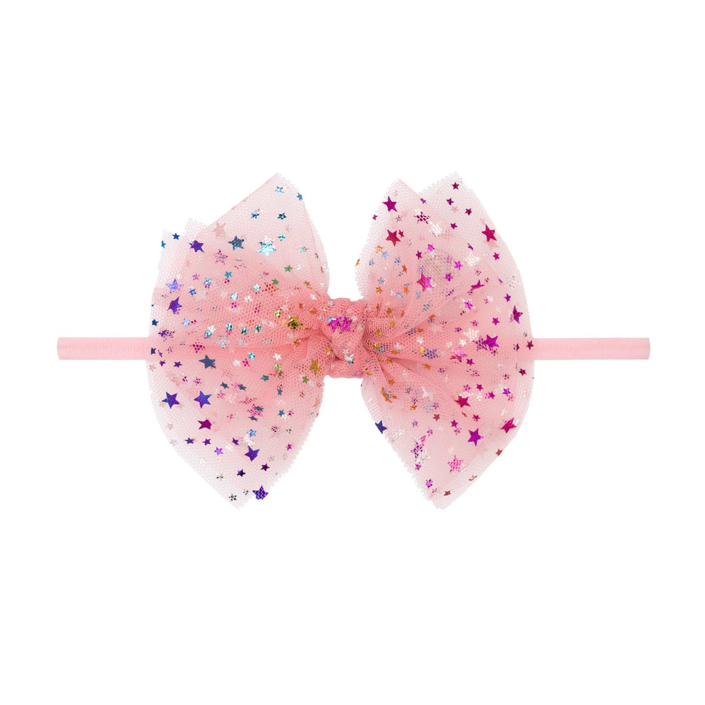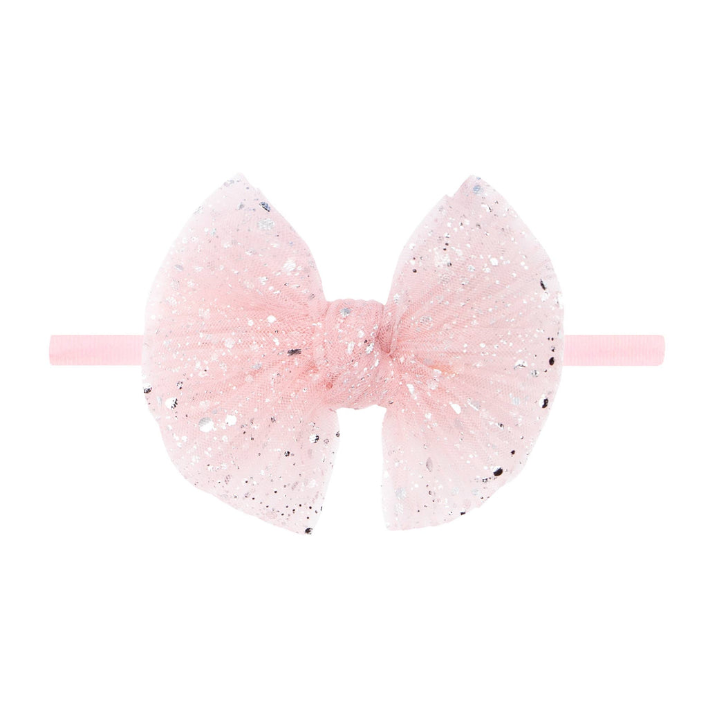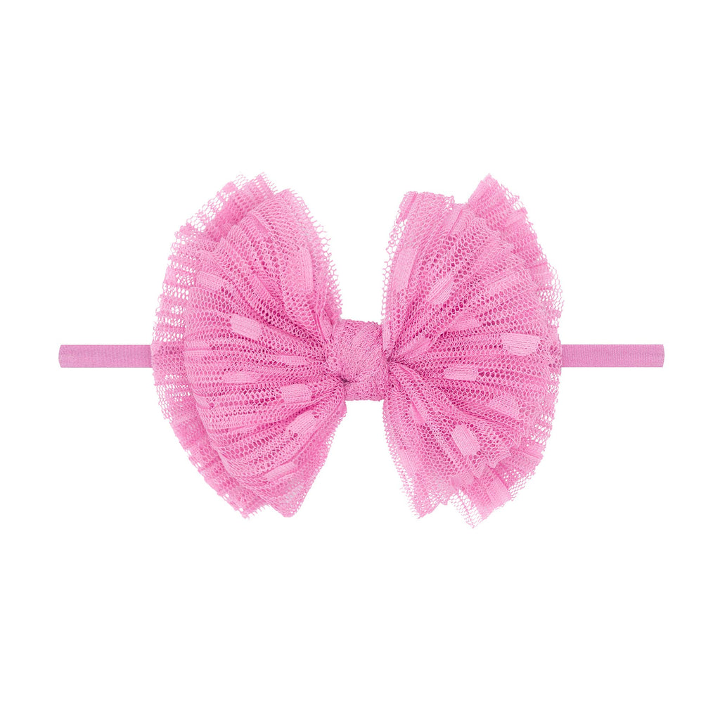 Baby Bling® Tulle FAB® Skinny nylon headband with tulle bow: Pleated Rose Quartz