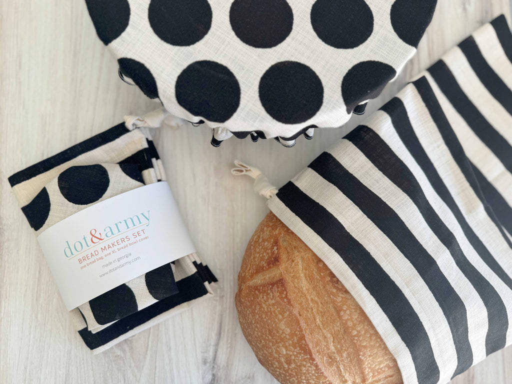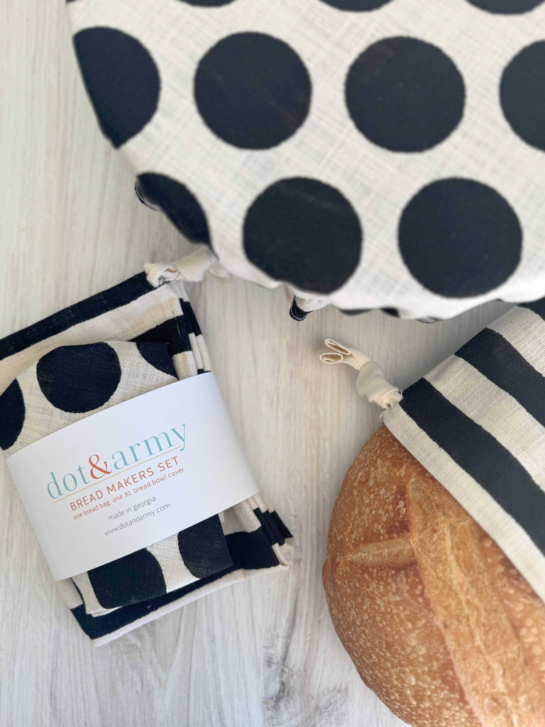 Perfect for the bread maker in your life (this may be you!). A linen blend xl bowl cover (skip the plastic) for your rising dough and a bread bag for after you bake your bread.
