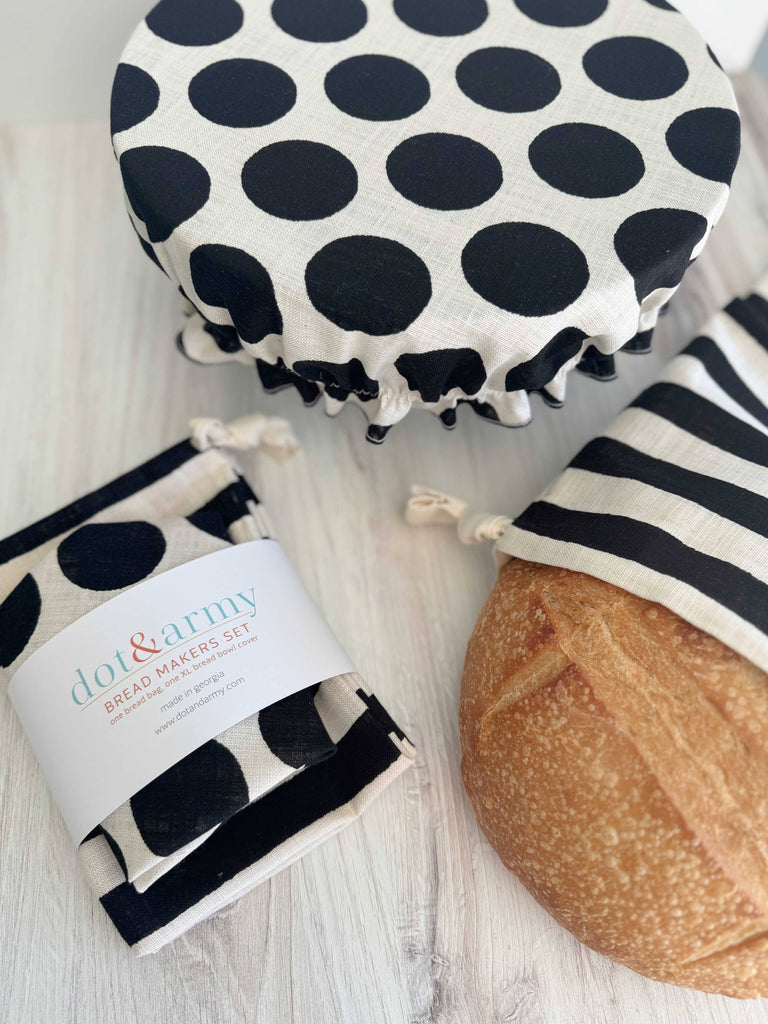 Black Dot and Stripe Bread Makers Set- bread bag and cover