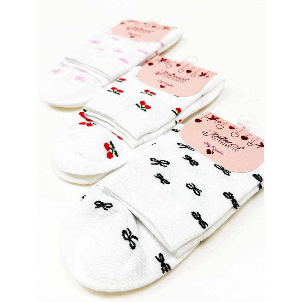 Bow and Cherry Print Everyday Socks: MIX COLOR / ONE(12)