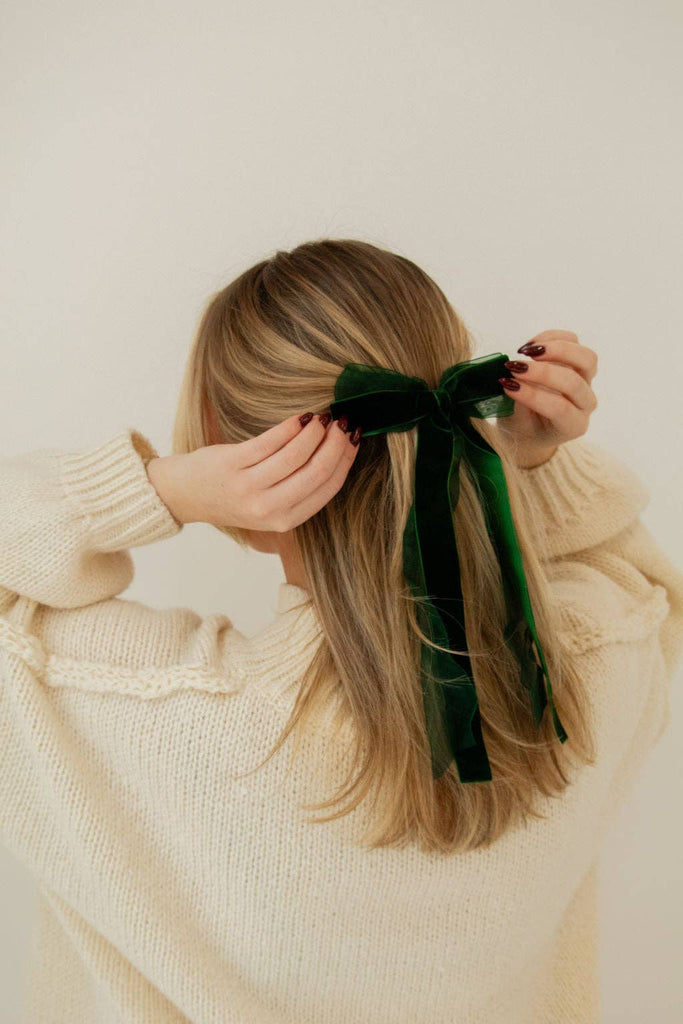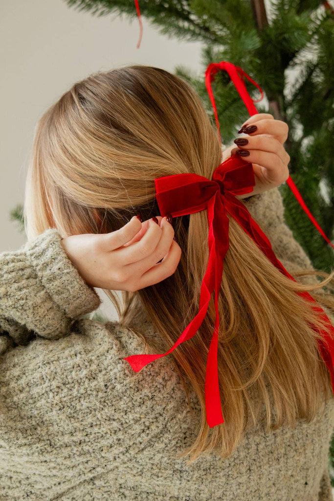 Andi bows are the perfect mix of feminine, sophistication, and whimsy! This Long tailed bow is a must for the holidays. Made with a beautiful velvet, it seamlessly matches any hairstyle and outfit, and with the alligator style applicator, it's so easy to secure.