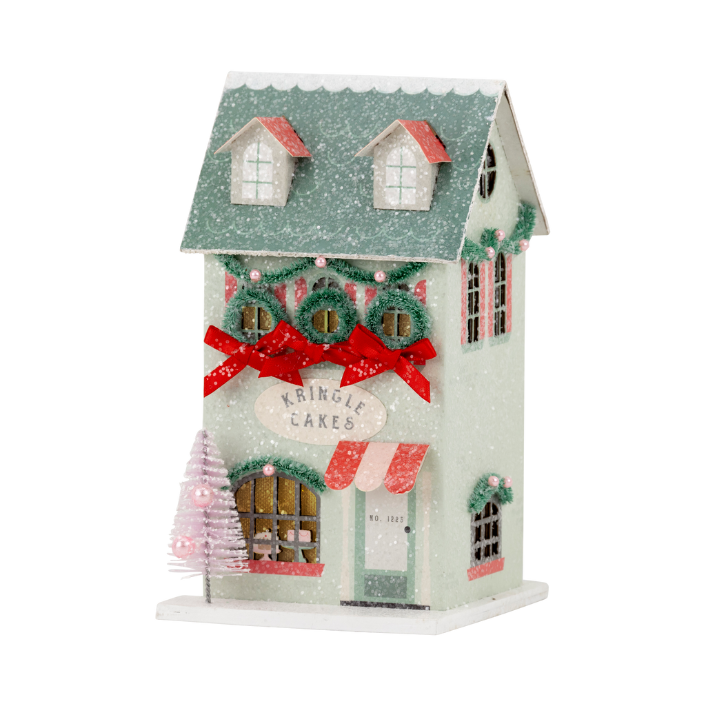 Get ready for the sweetest holiday treat with our Christmas Village Cake Shoppe. Add some festive cheer to your decor with this heavyweight paper house village. Perfect for a charming addition to your Christmas village collection. Happy Holidays!