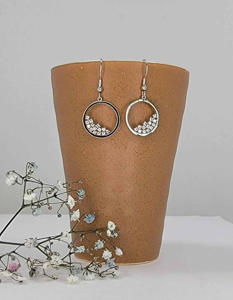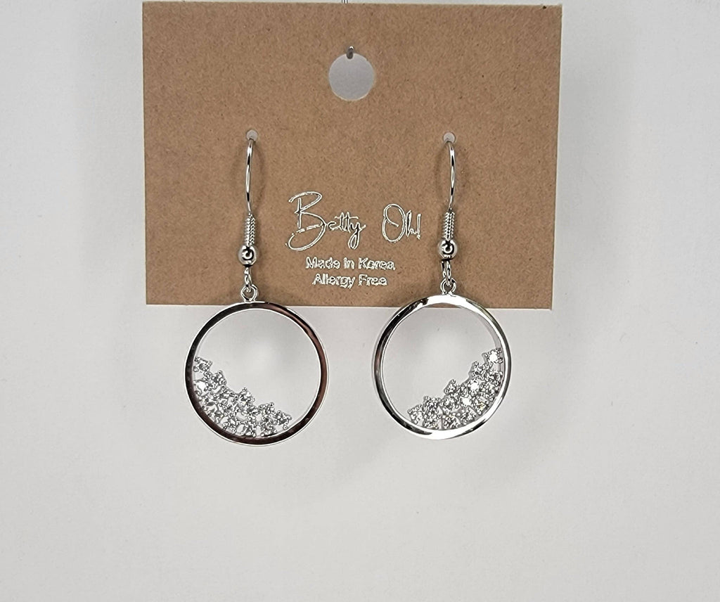 Circle Fill With Stones Hook Earring.