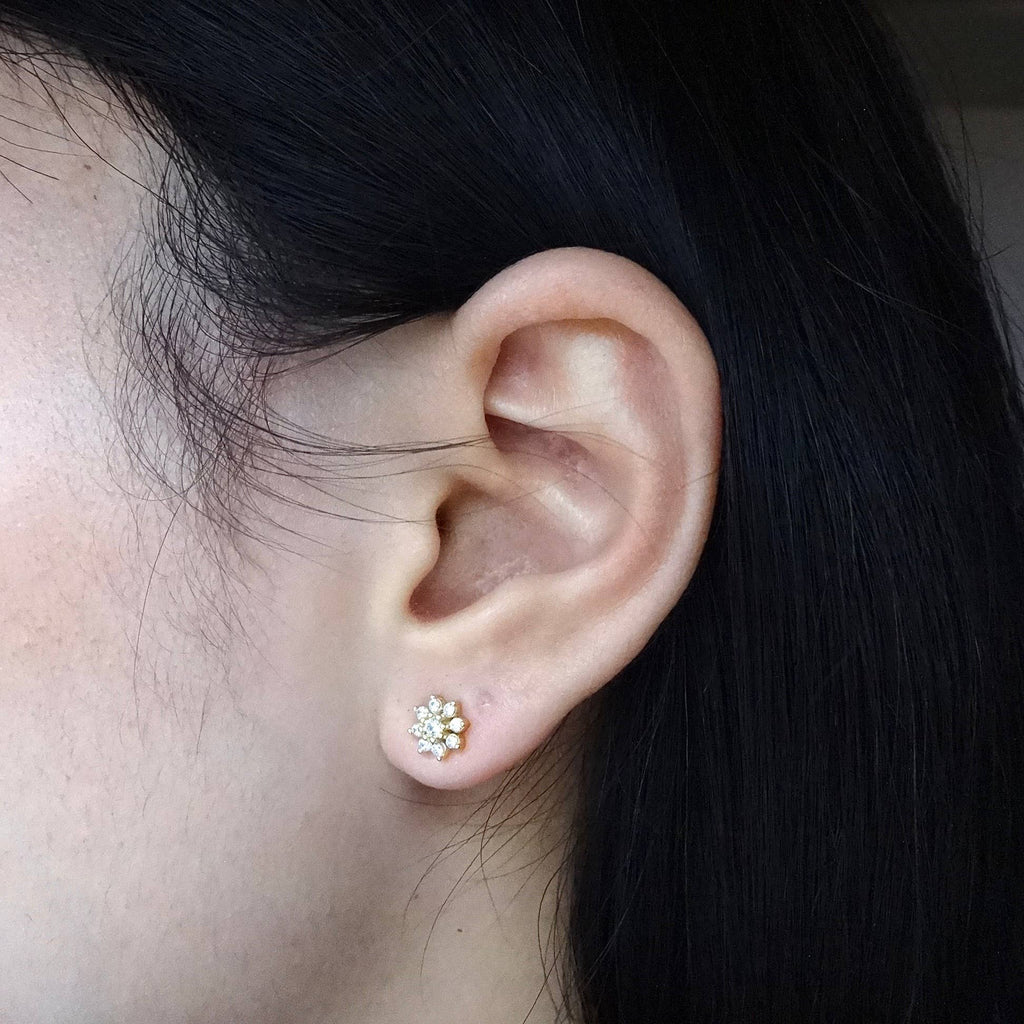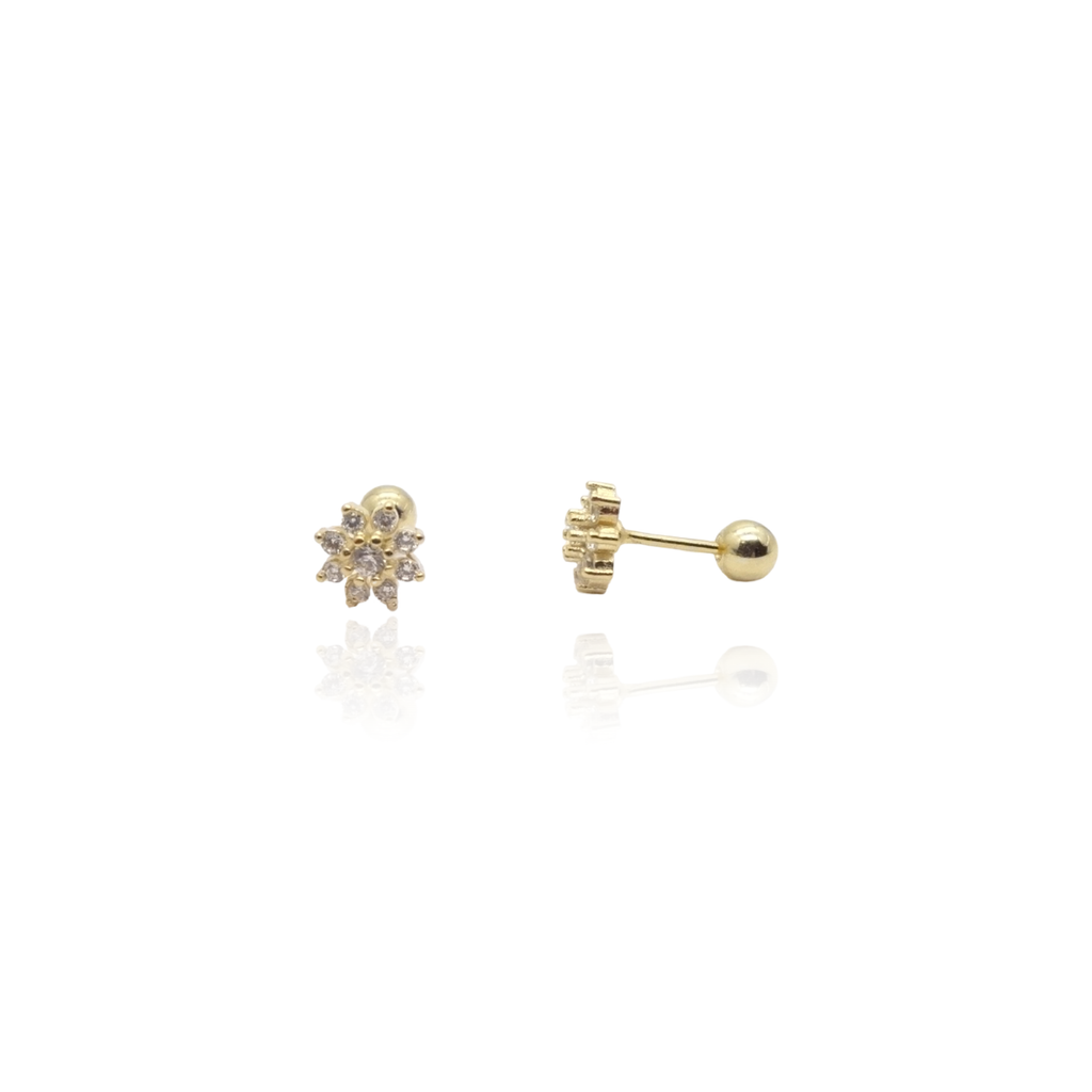 CZ Flower Diamond Screw Back Earrings: Yellow Gold