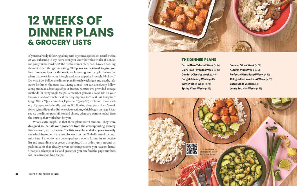 Save time, money, and energy with strategic meal planning, grocery lists, and kitchen prep. With over 125 recipes, Don’t Think About Dinner eliminates decision fatigue and makes healthy living effortless, delicious, and even fun!