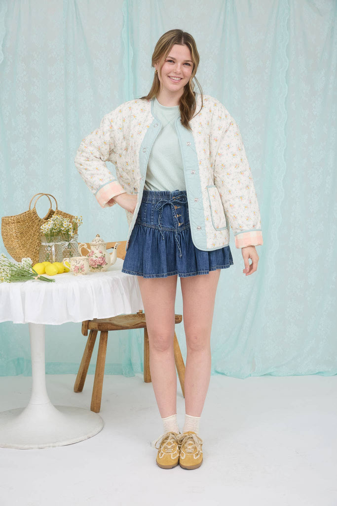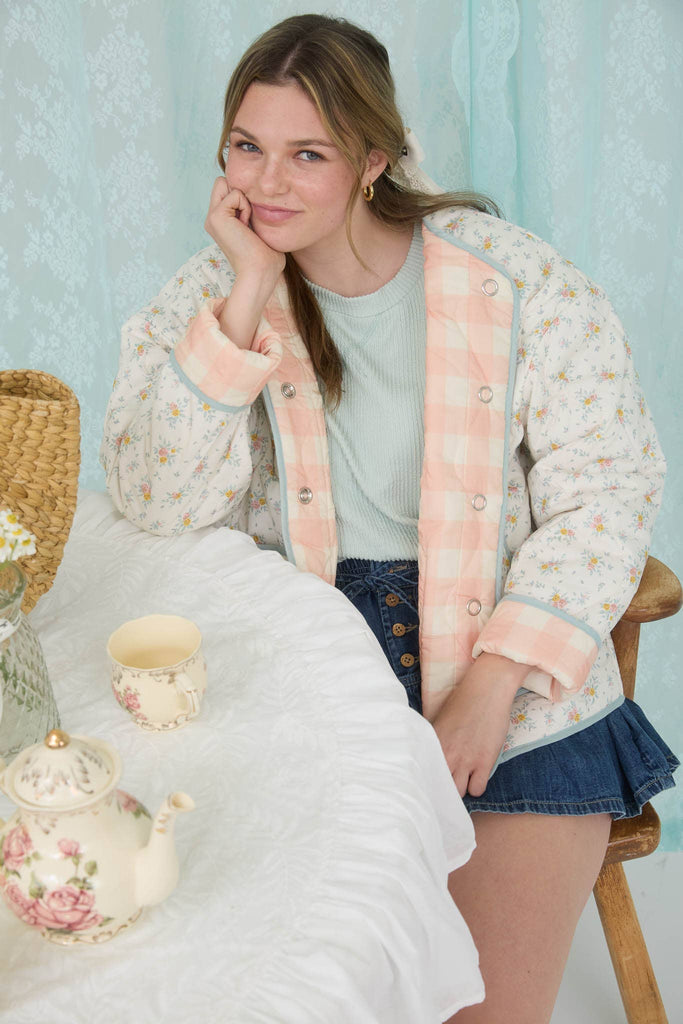 FLORAL QUILTED PLAID LINED JACKET: CREAM MULTI