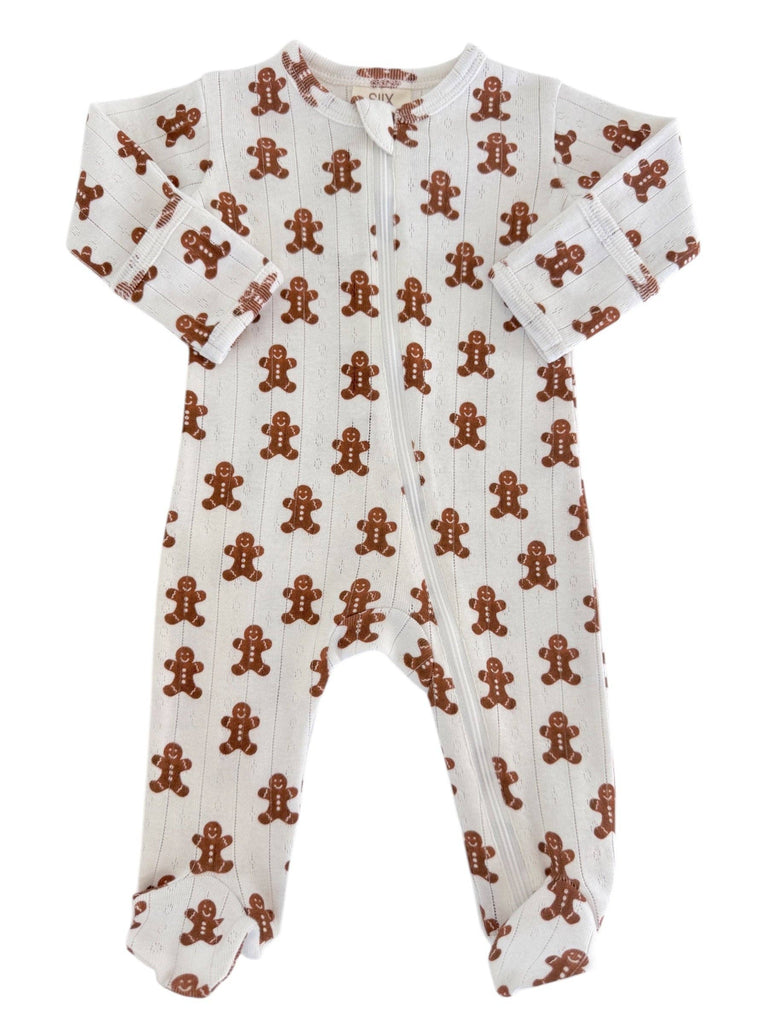Gingerbread / Organic Pointelle 2-Way Zip Footie: Newborn