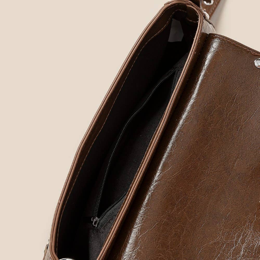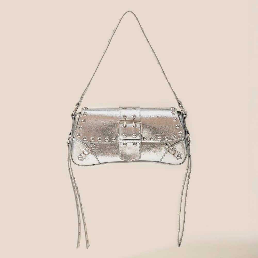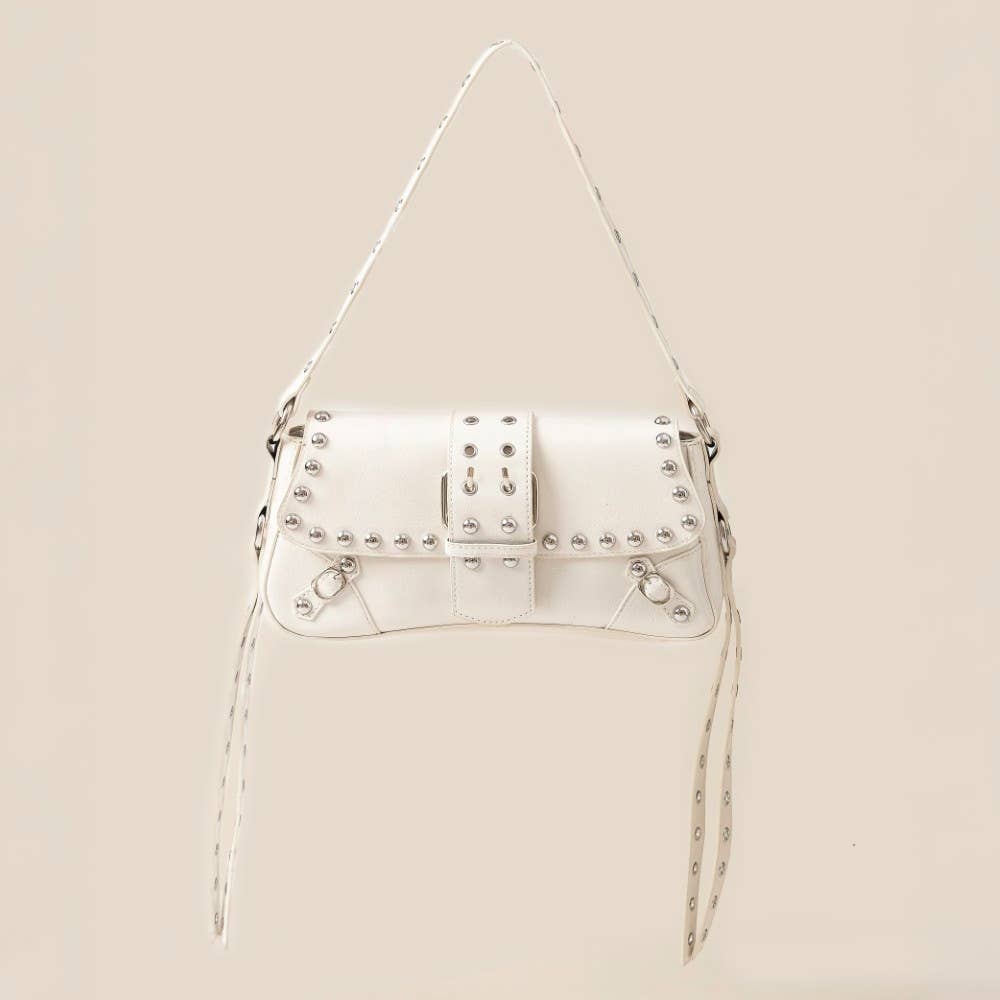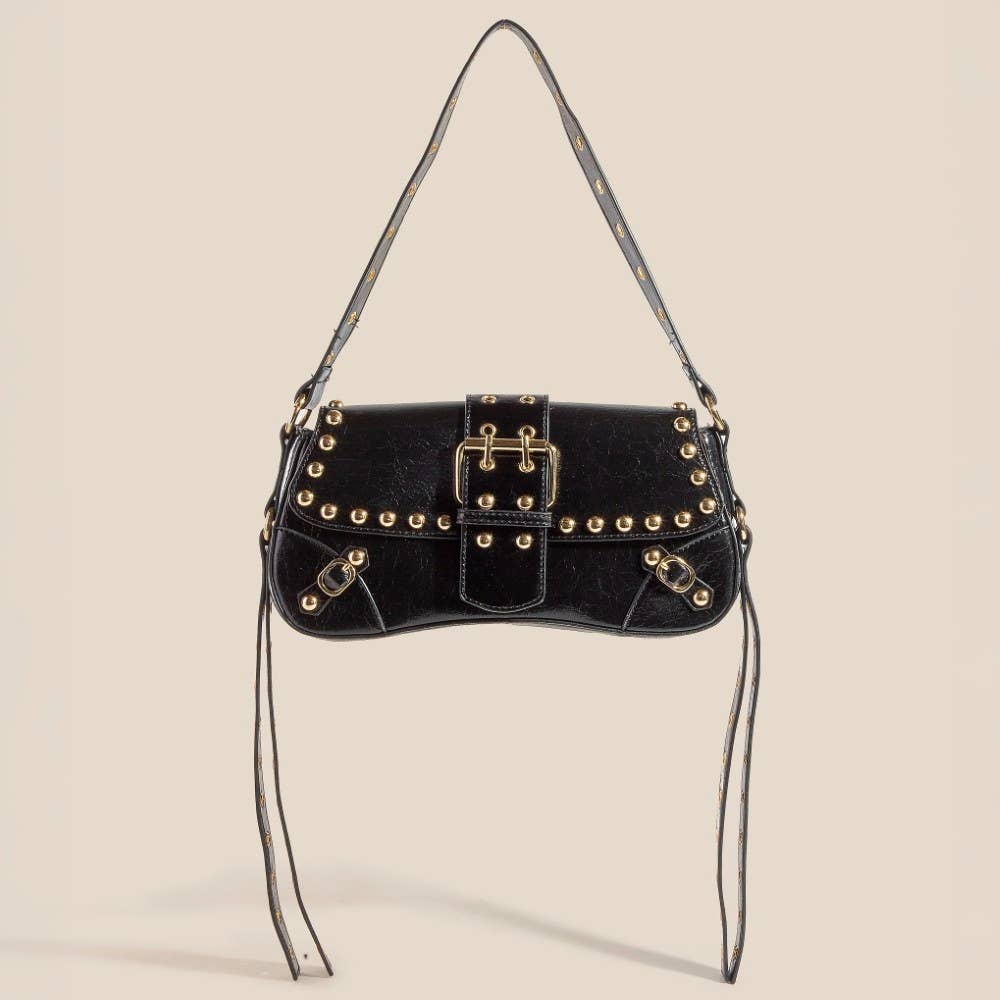 Glossy Leather Rivet Trim Shoulder Bag: SBK