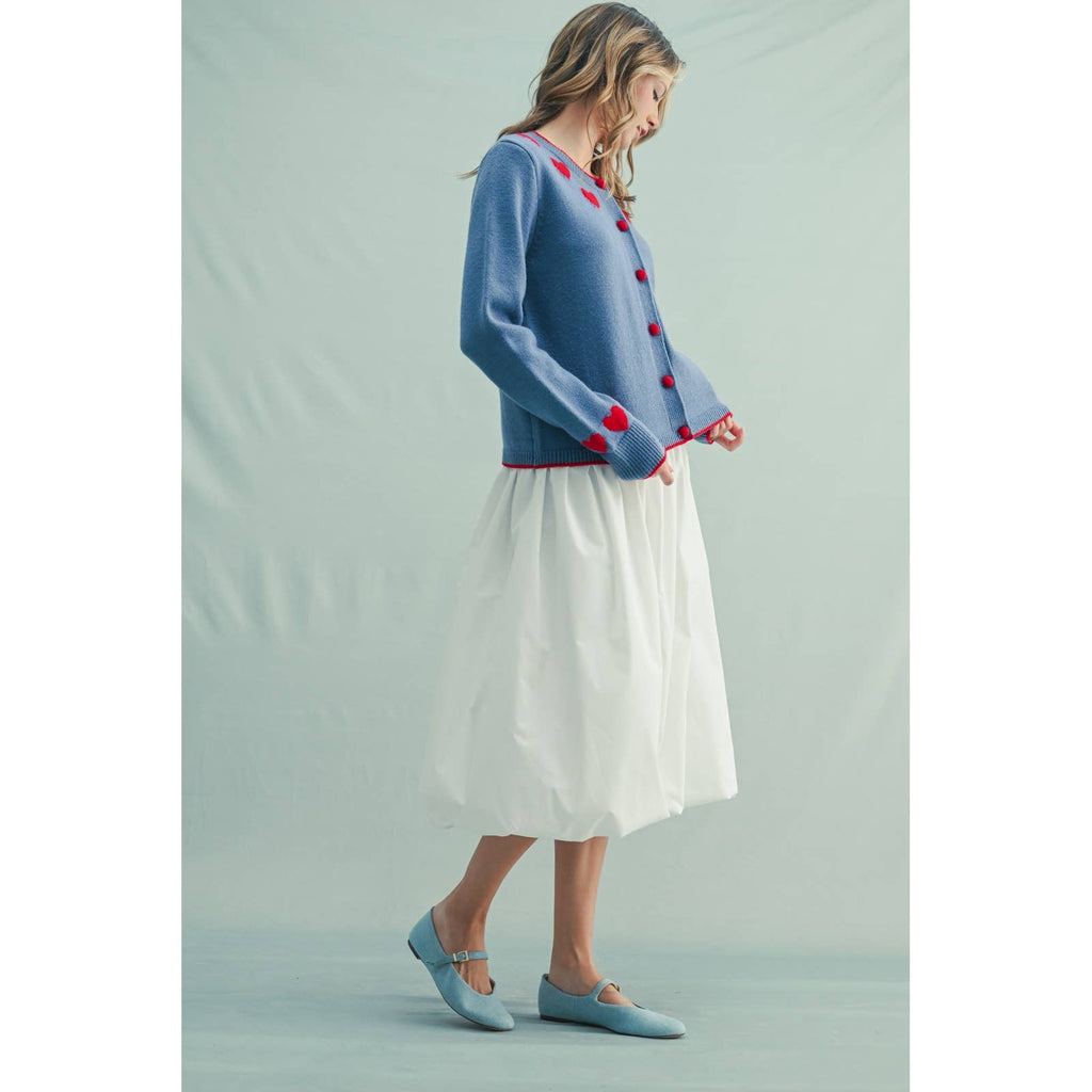 HEART DETAIL BUTTON-UP SWEATER TOP: M.BLUE/POPPY