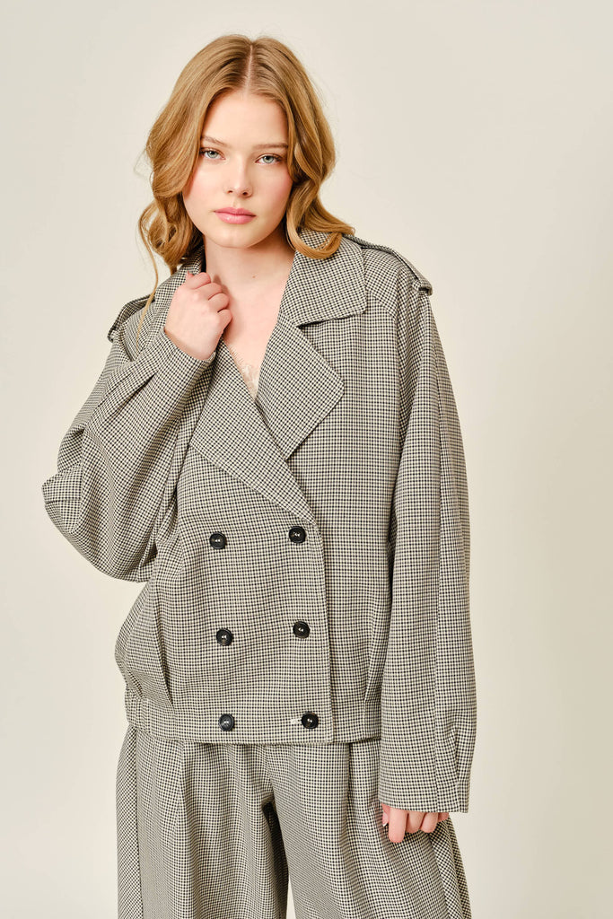 Houndstooth Double Breasted Half Trench Jacket