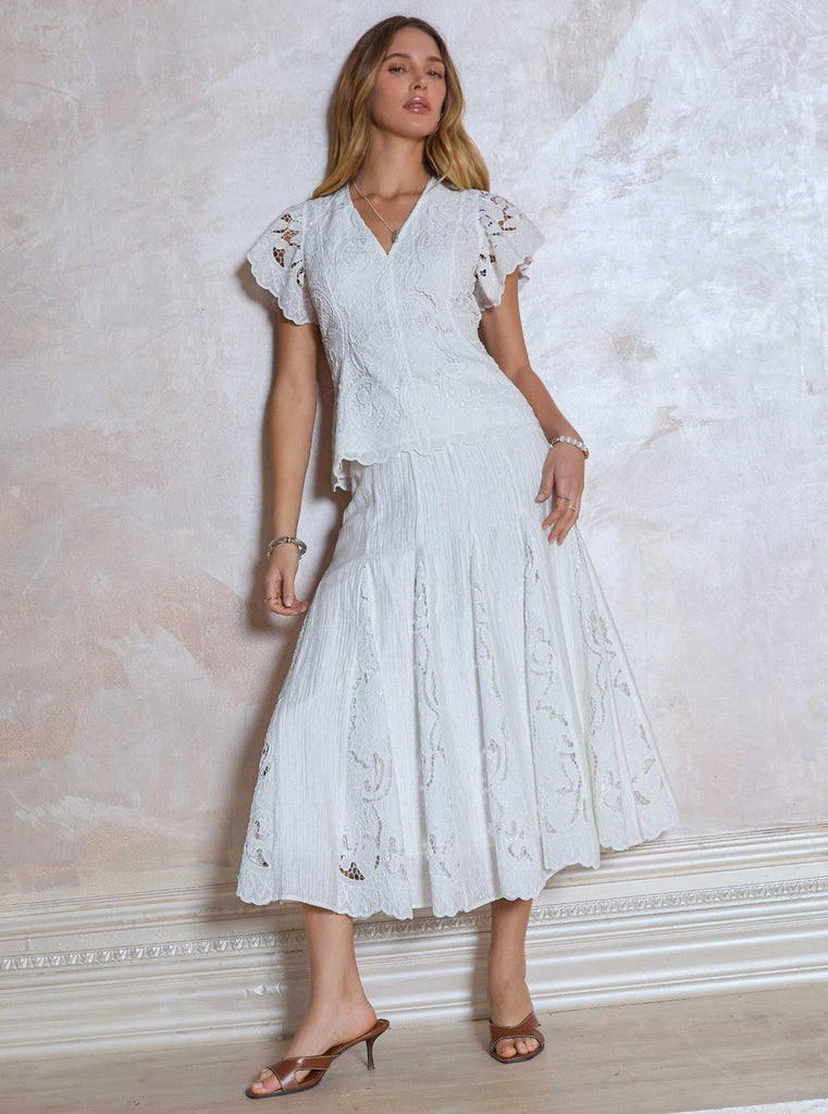 Lace Short Sleeve Peplum Blouse & Skirt Set