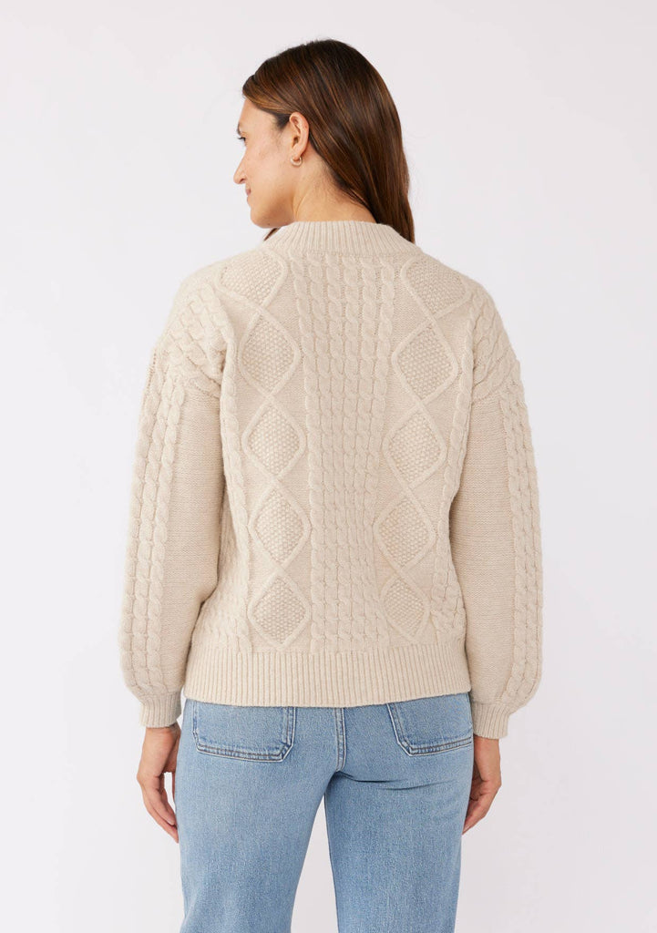 Long Sleeve Cable Zip-Up Coatigan: Natural