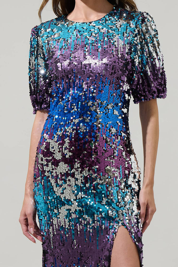 Navette Short Sleeve Sequin Midi Dress: Multi