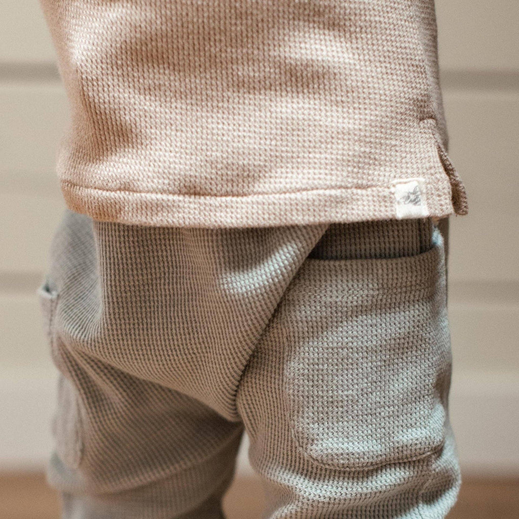 Easy, breezy every day style for school and play in this raglan shirt and pant set! * Long sleeve shirt and pant set * 100% organic cotton * Thermal cotton top and pant * Raglan sleeves with front placket at neckline * Harem style pant with rolled hems * Functional pockets and functional drawstrings on pant * Made in India *
