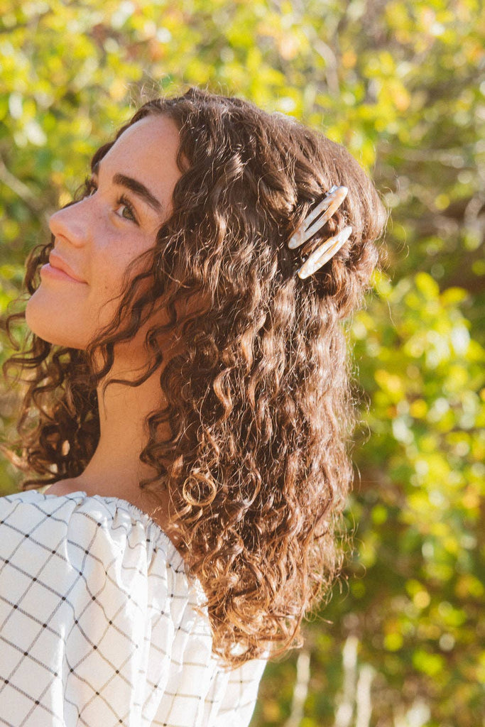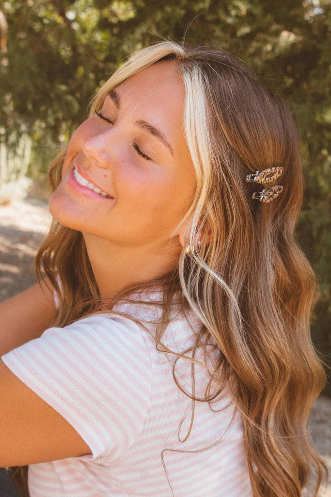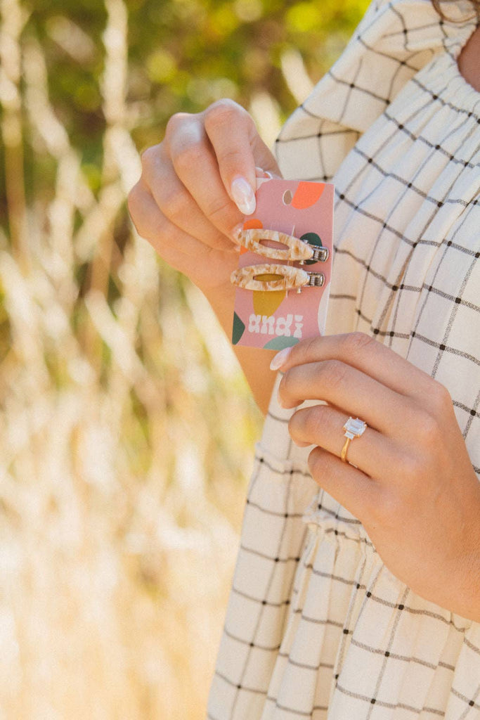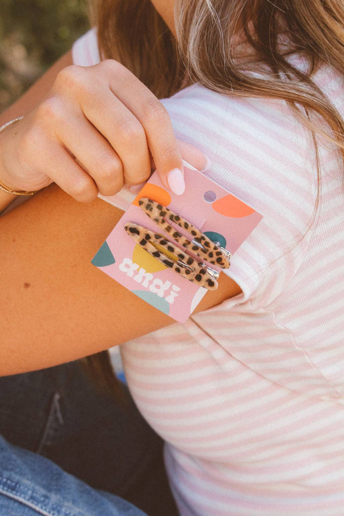 These oval alligator clips are to die for, and are so perfect for this time of year. The best accessory to add to any hairstyle for a little something extra. They are 2.5 inches long and come in a beige marble as well as a leopard.