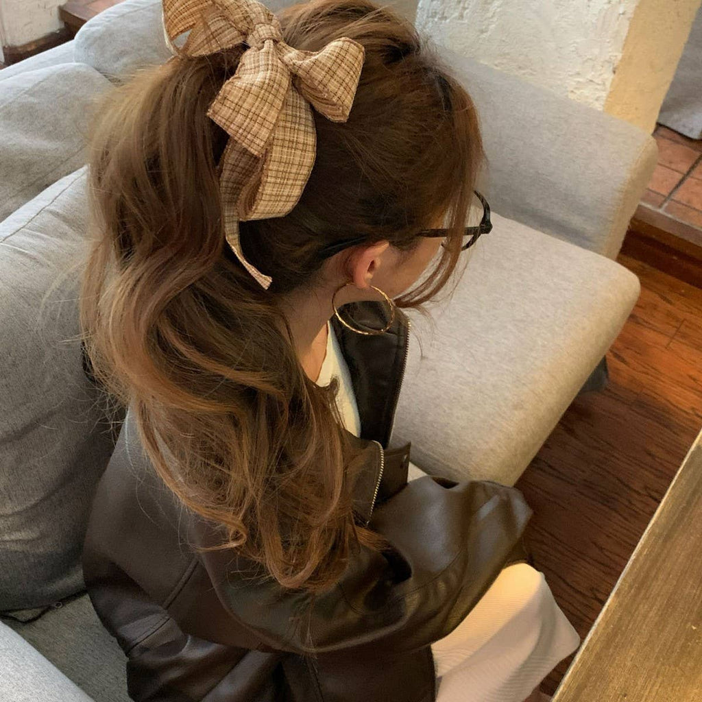 Plaid Bow Banana Clip Elegant Updo Hair Clip_CWAHA07932: CARAMEL / (OS) 1