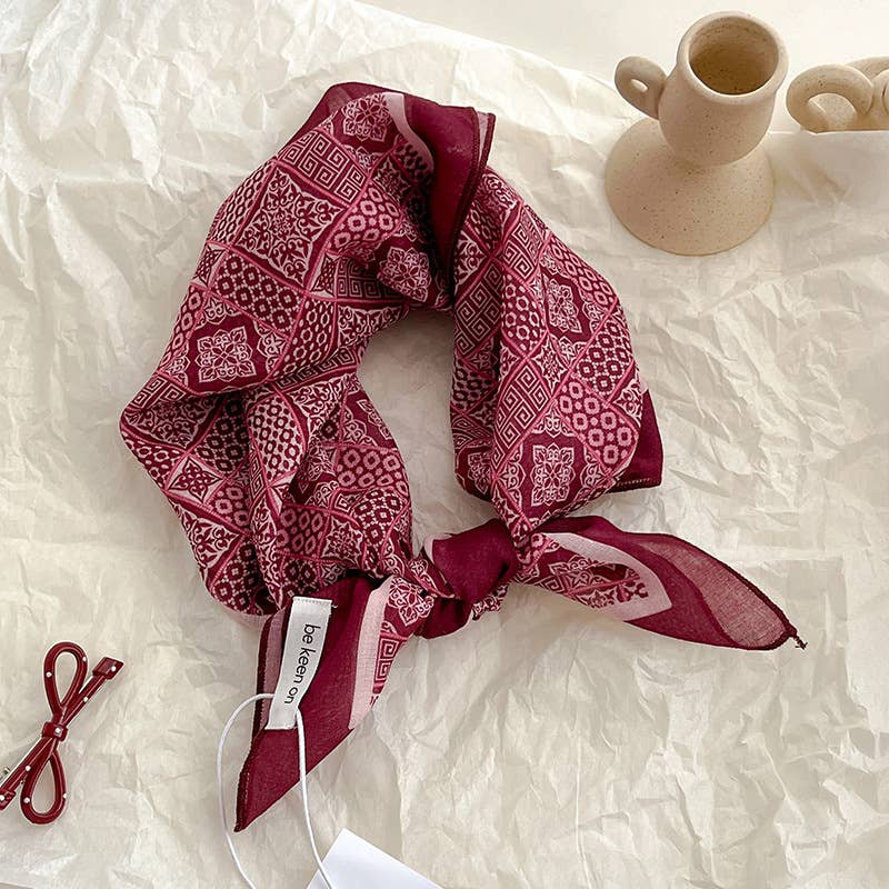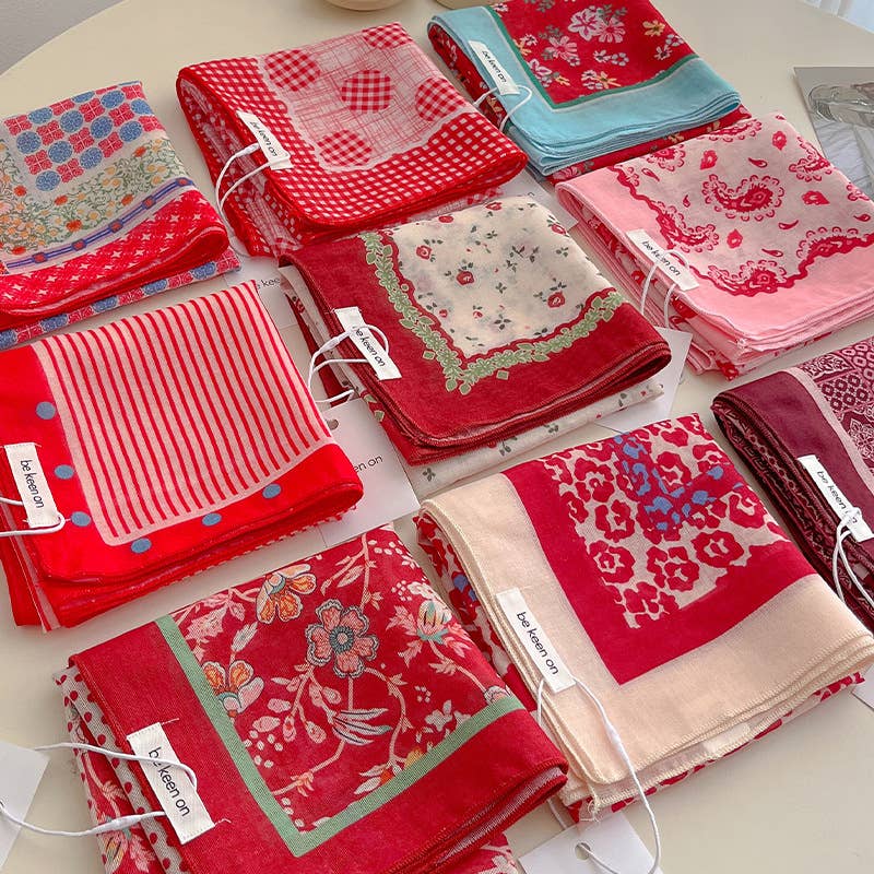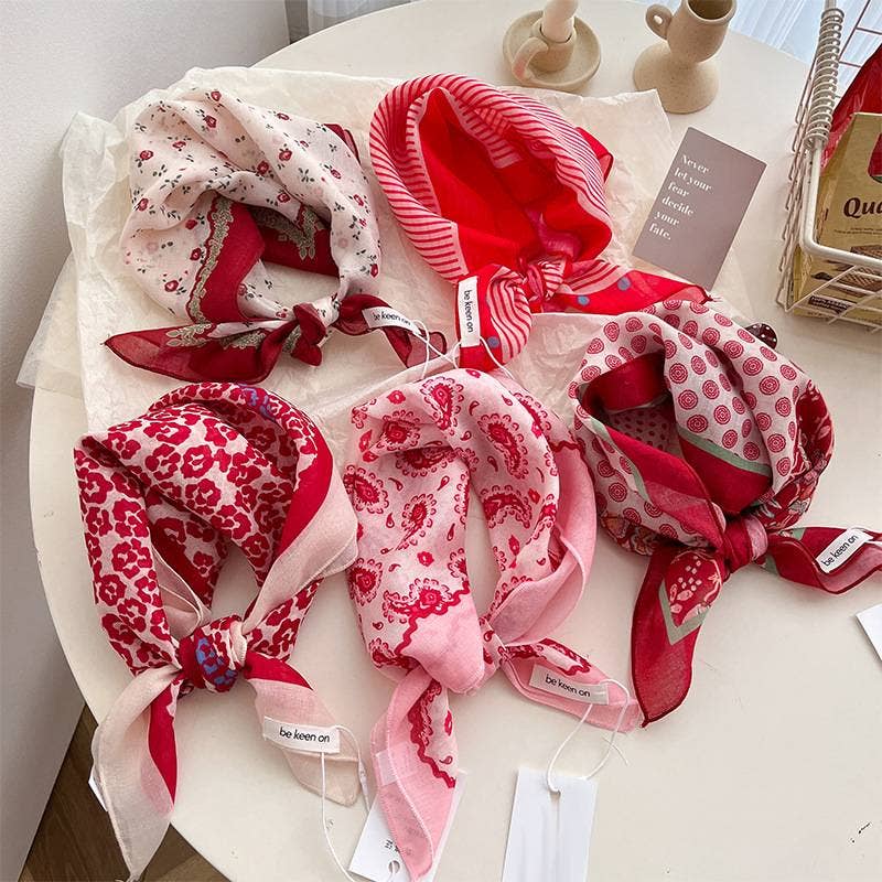 Red Passion Floral Bandana Square scarf - Lulu Bella Boutique