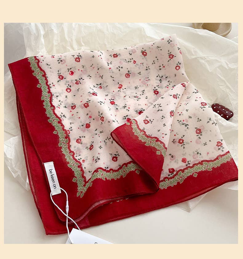 Red Passion Floral Bandana Square scarf_