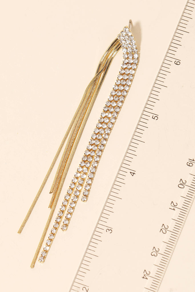A must have trending pair of earrings that features a rhinestone rope chain fringe earrings design. Perfect for formal events! Available in G and S.