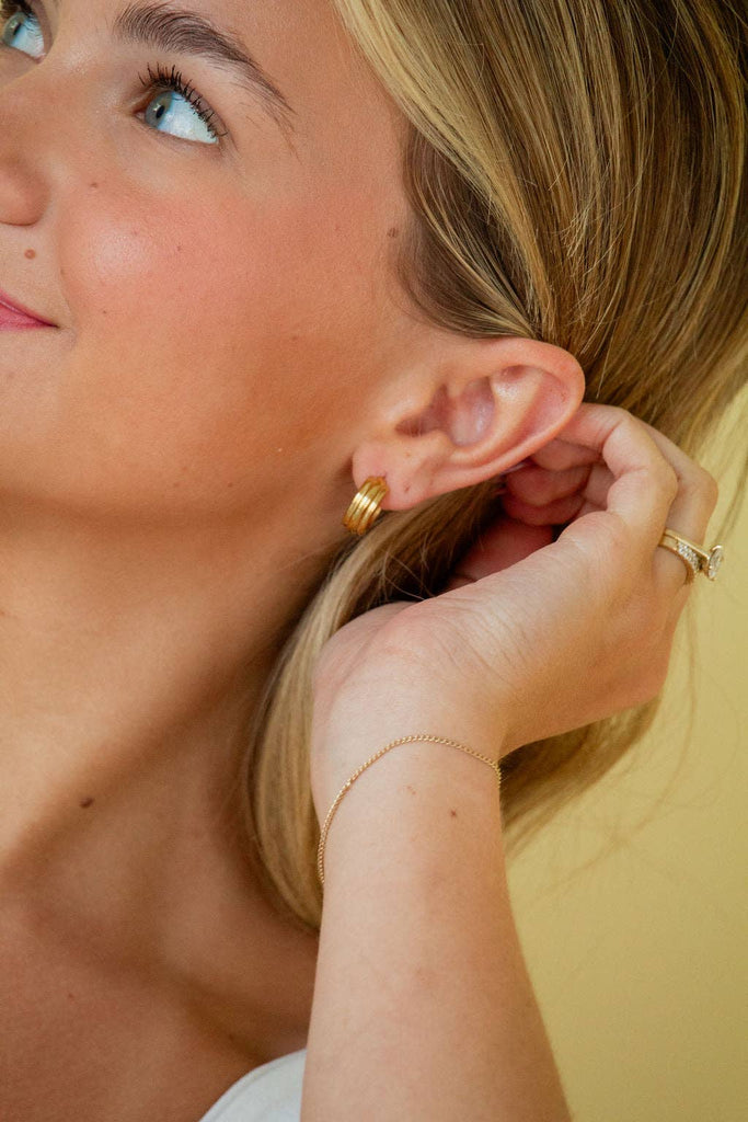 These are the absolute cutest staple earrings! They're the prettiest, chunky, ridged timeless hoops coming in both gold and silver. Because they're stainless steel, they are hypoallergenic/water resistant and perfect for any occasion!