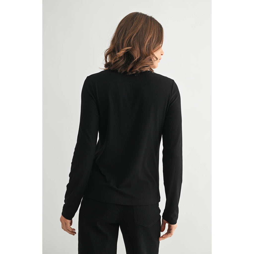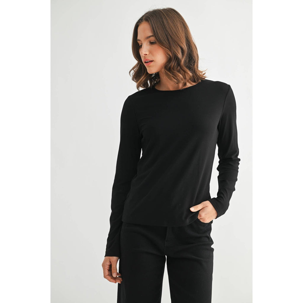 ROUND NECK LONG SLEEVE KNIT TOP: Black