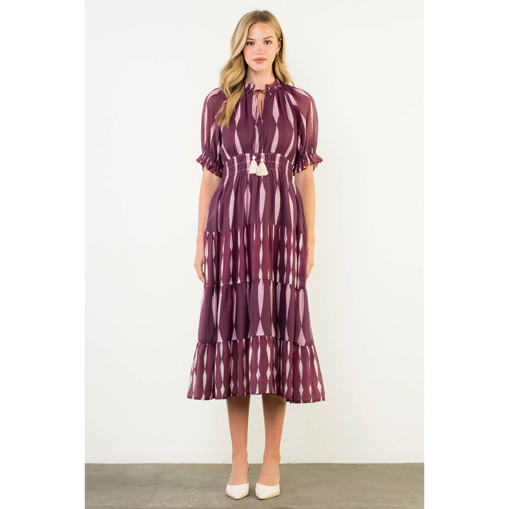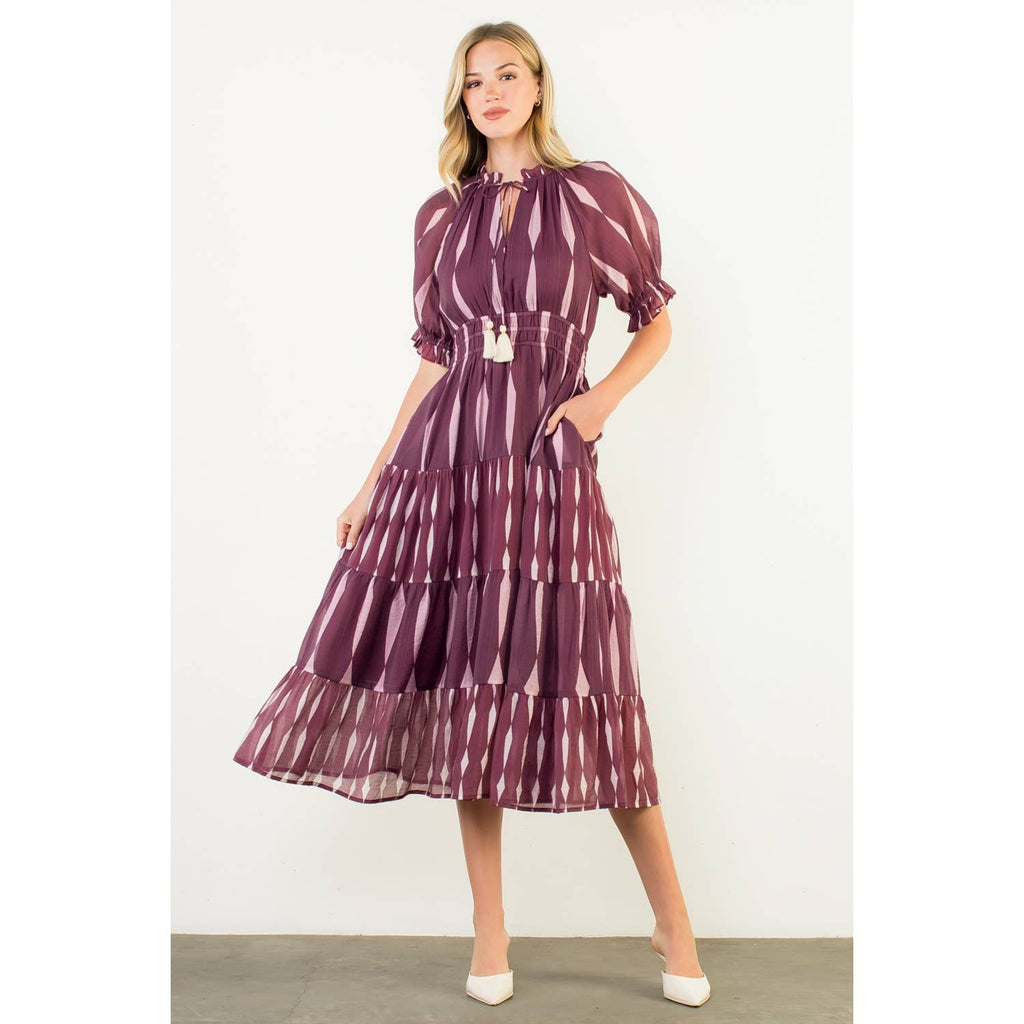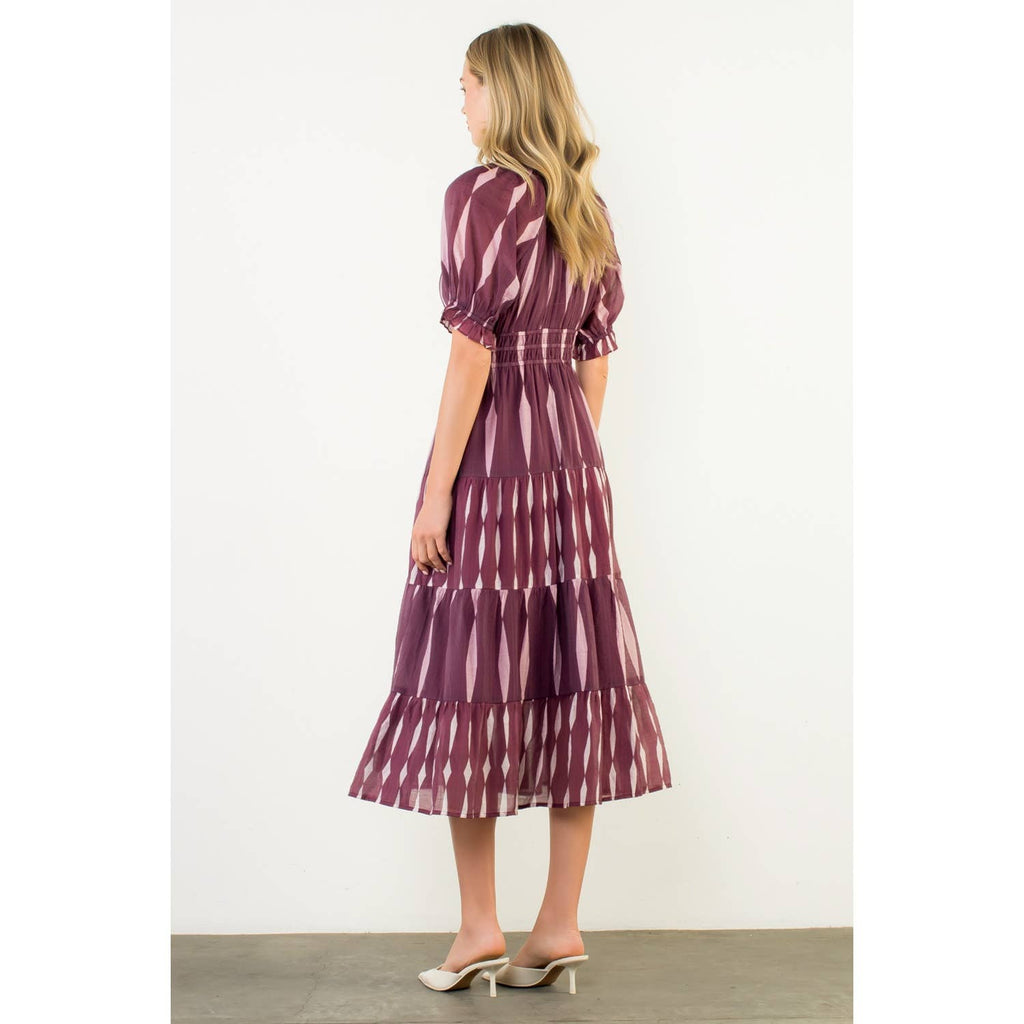 Short Sleeve Pattern Maxi Dress: BURGUNDY