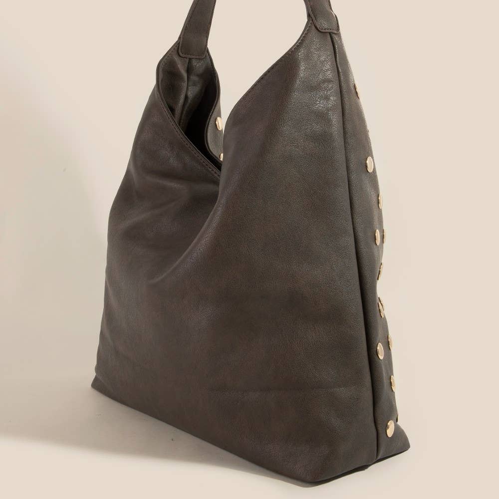 Sleek, modern, and always stylish, this hand bag introduces an exceptional studded leather handbag design. This hand bag is the perfect way to add a touch of elegance to any outfit. Available in GBK, GDBR, SBK, SKA. This item is sold in packs of 1.